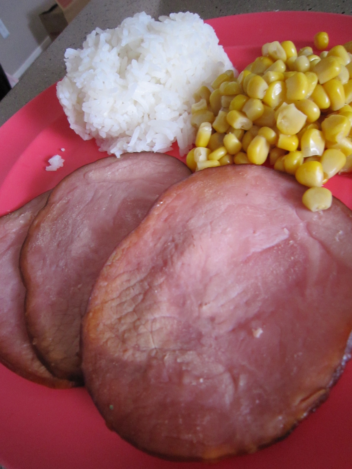 Here is the final product. I like to eat ham with rice and corn, but you could choice any sides you like. The ham does not get dried out which is great. This is such a great recipe!