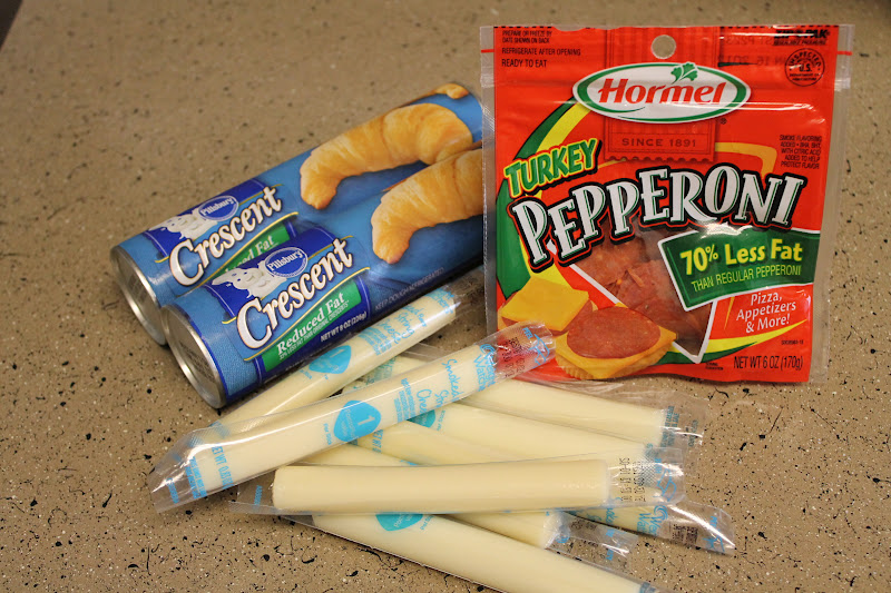 I found this recipe for Crescent Pepperoni Roll-Ups at Plain Chicken. I adapted Steph's recipe to help make this Super Bowl snack a little bit more Weight Watchers friendly.